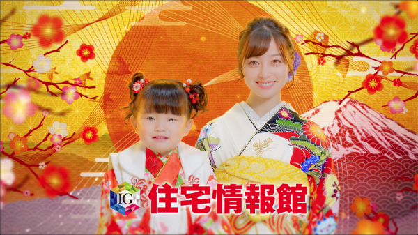 住宅情報館のお正月CMといえば、やはり橋本環奈さんの美しすぎる和服姿。さらに2022年は、村方乃々佳ちゃんの可愛らしい和服姿も加わって、スタイリッシュな和の雰囲気の中で、華やかに、キュートに新年を祝います。CMでは、「住まいをお探しの皆様に、すてきな住まいが見つかりますように」と祈りを込めてメッセージします。