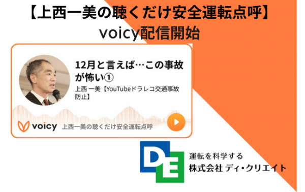 すべての方が交通事故の加害者にも被害者にもならない社会の創造を目指す株式会社ディ・クリエイト(東京都港区 代表取締役 上西 一美)は、2021年12月18日(土)に【上西一美の聴くだけ安全運転点呼】をvoicyにて配信開始をいたしました。