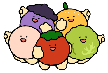野菜と果物の妖精。「とまと」や「にんじん」などの定番野菜や、珍しい果物など沢山の個性豊かなキャラクターがいます。