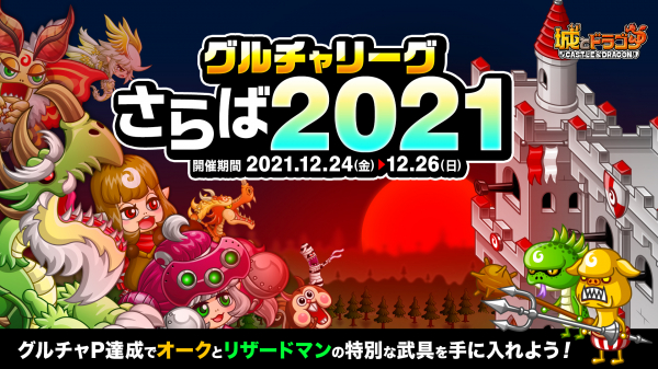 株式会社アソビズム(本社:東京都千代田区、代表取締役:大手智之)は、App Store・Google Playにて好評配信中の『城とドラゴン』で、2021年12月24日(金)より「グルチャリーグさらば2021」を開催いたします。