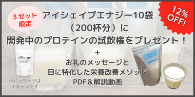 この度、弊社で開発しているプロテインの味が確定した最終バージョンの試作品を試飲できる権利を、アイシェイプエナジー10個をまとめて支援された方に付属するリターンを追加いたしました。