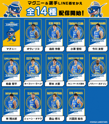 株式会社インクルーズ(東京都渋谷区、代表取締役社長 山? 健司)は、LINE株式会社(東京都新宿区、代表取締役社長 出澤 剛)が運営するコミュニケーションアプリ「LINE」内の着せかえショップにて、「滋賀レイクスターズ」所属の選手キーヴィジュアルとマスコットキャラクター「マグニー」を利用したLINE着せかえ計14点を2021年12月28日(火)に一斉に販売開始致しました。