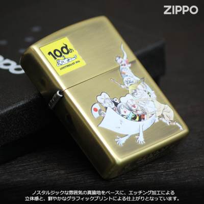 ライター本体はノスタルジックな雰囲気の真鍮地をベースに、エッチング加工による立体感と、鮮やかなグラフィックプリントによる仕上がりとなっています。
