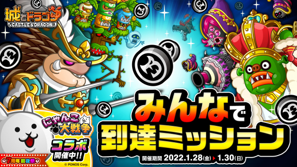 株式会社アソビズム(本社:東京都千代田区、代表取締役:大手智之)は、App Store・Google Playにて好評配信中の『城とドラゴン』で、「みんなで到達ミッション」を2022年1月28日(金)より開催いたします。