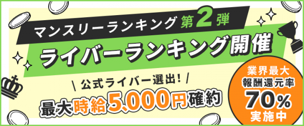 ランキング1位に輝いたライバーは、公式ライバーとして時給5,000円を確約!