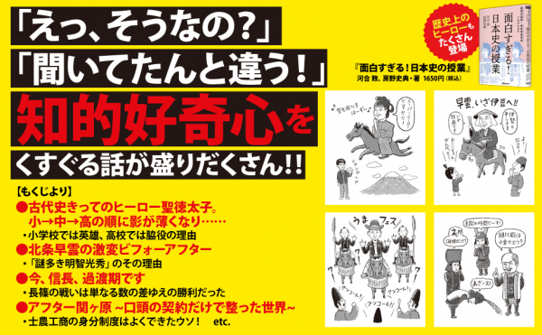 ここまでかみ砕いて日本史をわかりやすく語った本は、これまでなかったはず『面白すぎる!日本史の授業――超現代語訳×最新歴史研究で学びなおす』著者河合敦、房野史典が、キンドル電子書籍で配信開始。