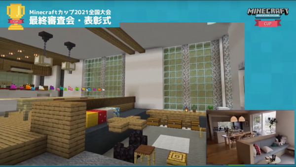表彰式の前には、現地から中継で小林さんち。が紹介され、Minecraftの中に作られた小林さんち。と並行して家の中を見学しました。