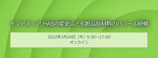 株式会社矢野経済研究所(本社:東京都中野区、代表取締役社長:水越 孝)と、インドネシア政府公認の研修機関であるIHATECは、3月24日(木)の一日(9:20〜17:00)、インドネシア公式研修「インドネシア HASの変更点と化粧品原料のハラール研修」をオンラインで開催いたします。