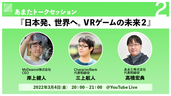 あまたトークセッション2 『日本発、世界へ。VRゲームの未来2』 3月4日(金)オンライン開催決定!