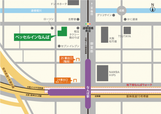 場 所 : ベッセルインなんば (大阪府大阪市中央区道頓堀二丁目2番18号)