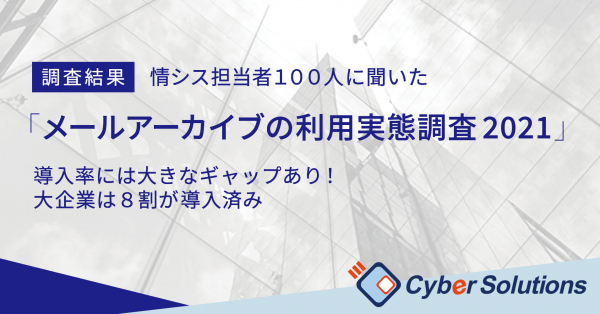 法人向けソフトウェアの開発、販売を行うサイバーソリューションズ株式会社(所在地:東京都港区、代表取締役社長:秋田健太郎、以下当社)は、2021年12月に全国従業員数300人以上の企業の情報システム担当者100名を対象とした、「メールアーカイブ利用実態調査」を実施しました。