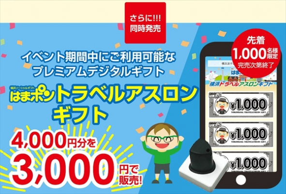 横浜ソーシャルギフト「はまポン」を活用したプレミアムデジタル商品券4,000円分を3,000円で販売します。