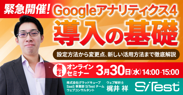 株式会社グラッドキューブ(本社:大阪市中央区 代表取締役 CEO 金島弘樹 以下:グラッドキューブ)は、3月30日(水)14:00〜「Googleアナリティクス4 導入の基礎」をテーマにオンラインセミナーを開催いたします。