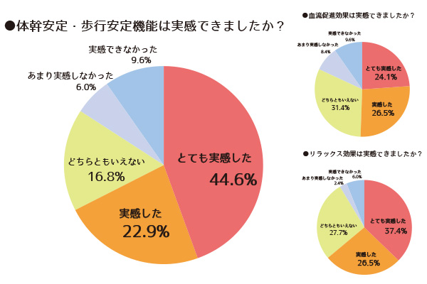 いつもは疲れやすく歩かないのに、着用したその日から足取りがしっかりし、たくさん歩くようになった、など驚きのコメントをいただきました。