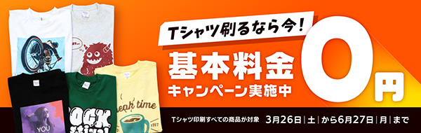 〜Tシャツ刷るなら今!基本料金0円キャンペーン〜