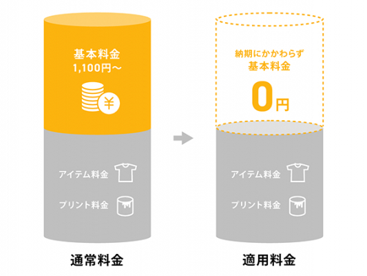 Tシャツプリントにかかる基本料金(通常¥1,100〜)が無料