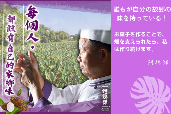 当初は、ベビービスケットや中華菓子の製造が中心でした。1998年、大甲では予想外の豊作により、タロイモが供給過剰になった。無駄になりそうになった大甲のタロイモは阿聰師独創的な手によって、タロイモ菓子に生まれ変わり、全国にその名を知られるようになったのです。そして台湾のタロイモ産業全体に経済効果をもたらす事になった。