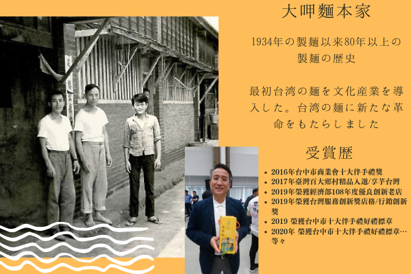 1934年から80年以上にわたって麺を作り続けてきた、最初台湾の麺を文化産業として導入した。台湾の麺に新たな革命をもたらしました伝統的な麺に文化の創造性を加えてお土産土品にふさわしい麺作品を仕上げた。数多くの賞を受賞しました。