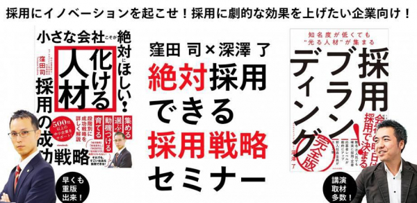 採用にイノベーションを起こせ!採用に劇的な効果を上げたい企業向け! 「採用ブランディング」著者 深澤 了 × 「化ける人材」著者 窪田 司 絶対採用できる採用戦略セミナー 3月30日開催