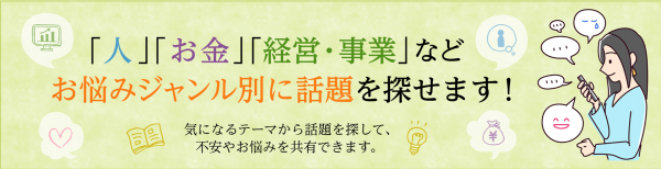 トップページに「経営・事業」、「お金」、「人」、「その他(気持ちなど)」、「お役立ち情報(イベント情報など)のカテゴリを追加し、ジャンル別に話題一覧へ移動できる仕様になりました。