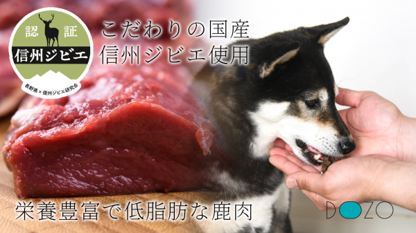 愛犬の健康寿命を考えた特別なごはん「DOZO(ドーゾ)」【信州ジビエ使用の国産ドッグフード】が、アタラシイものや体験の応援購入サービス「Makuake(マクアケ)」にてプロジェクト開始!