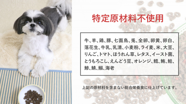 特定原材料を排除し、愛犬の体調を考えた総合栄養食に仕上げています。