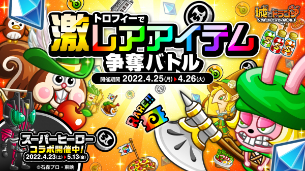 4月25日(月)から4月26日(火)まで、ゲーム内のトロフィー獲得を目指して戦うバトルイベント「トロフィーバトル」が開催されます。今回は、トロフィーに挑み、勝利した際に“ルビー”や“ドラゴンメダル”などが獲得できる「トロフィーで激レアアイテム争奪バトル」を同時開催。“ひとりで”でも“みんなで”でももらえますので、勝利を掴んでたくさんの報酬をゲットしましょう!