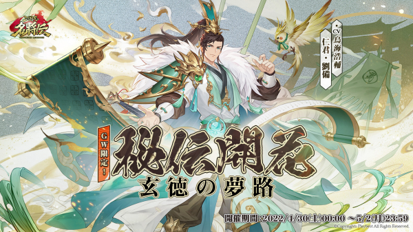 GW限定イベント「秘伝開花」より、所属する陣営によって2つの姿に変化する新たな秘伝武将「英主・劉備」、「仁君・劉備」(CV:鳥海浩輔)が登場いたします。 この「劉備」は、これまでの秘伝LR武将と異なり、GW限定のコンテンツ「三度、徐州を譲る」をプレイいただき、限定アイテム「御剣コイン」を集めることで獲得できます。