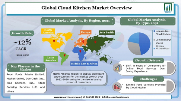 Research Nester Private Limitedは、クラウドキッチン市場の予測評価を提供する調査レポートを2022年5月 17 日 に発刊しました。これは、クラウドキッチン市場 の成長ドライバー、市場機会、課題、脅威など、いくつかの主要な市場ダイナミクス強調しています。