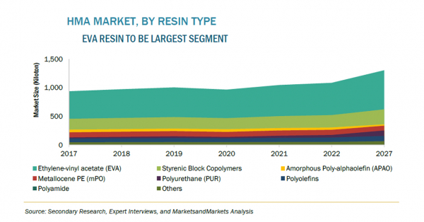 株式会社グローバルインフォメーションは、市場調査レポート「ホットメルト接着剤(HMA)の世界市場:タイプ(EVA、SBC、MPO、APAO、PA、PO、PU)、用途(パッケージソリューション、不織布衛生用品、家具・木工品、製本)、地域別 - 2027年までの予測」(MarketsandMarkets)の販売を5月18日より開始いたしました。