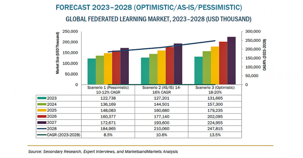 連合学習の市場規模、2028年に2億1,000万米ドル到達予測