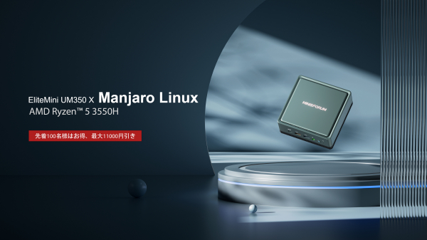 BESSTAR TECH LIMITEDが運営するミニPCメーカーのMinisforum(ミニーズフォーラム)は、2022年5月19日より2022年6月10日まで「EliteMini UM350x Manjaro Linux」はMinisforum日本公式ストア(https://store.minisforum.jp/)で最大11000円割引