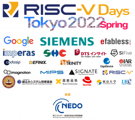NEDO(国立研究開発法人 新エネルギー・産業技術総合開発機構)がRISC−V DAYS TOKYO 2022 SPRINGを後援することが決定しました。5月31日ー6月2日に開催されます。