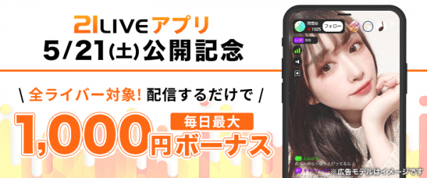 ※イベントや新機能の詳細は、21LIVEのアプリまたはウェブサイト(https://21.live/?b=pre1)内にあるバナーからご確認ください。
