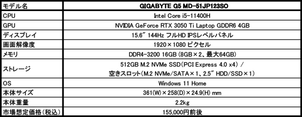 https://www.gigabyte.com/jp/Laptop/G5--Intel-11th-Gen