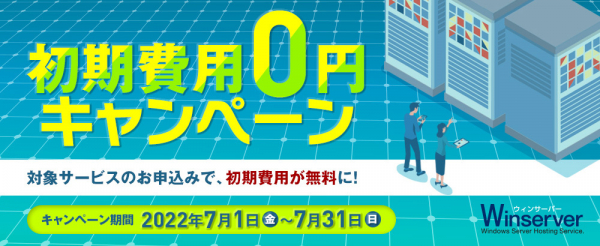 Winserver(ウィンサーバー/運営会社:アシストアップ株式会社)は、2022年7月1日(金)〜7月31日(日)の期間、初期費用0円キャンペーンを実施いたします。