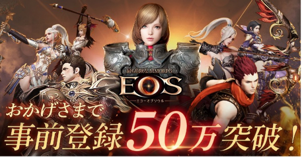 EOSは、2022年5月23日(月)より事前登録を開始し、10日目の6月1日(水)に事前登録者数30万人、31日目の6月22日(水)には50万人を突破致しました。