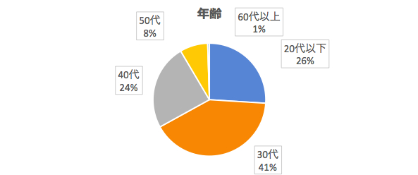 「20代以下」は26%、「30代」は41%、「40代」は24%、「50代」は8%でした。