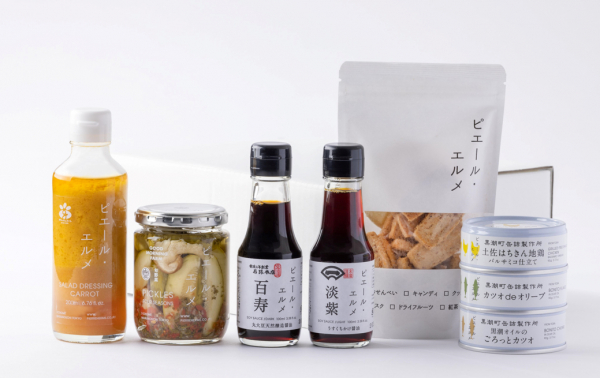 キャロットドレッシング、ピクルス クラウンメロンベビーきのこ&トマト、醤油 / 濃口(百寿)、醤油 / 薄口(淡紫)、えび&チーズのクッキー、缶詰(黒潮オイルのごろっとカツオ、カツオdeオリーブ、土佐はちきん地鶏バルサミコ仕立て)