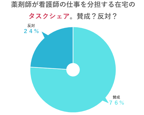 ・薬剤師が看護師の仕事を分担する在宅のタスクシェアに賛成の薬剤師は76%