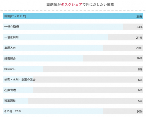 ・薬剤師がタスクシェアで外に出したい業務の1位は「調剤(ピッキング)」で28%