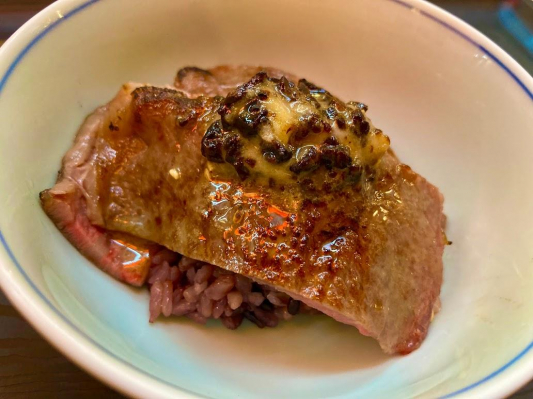 焼肉店ならではの本気で提供できる土曜の丑の日に向けた夏のスタミナ強化・疲労回復メニューを考えた結果、黒毛和牛のトモサンカク・シンシンを使った肉まぶし重にリブカルビで蓋をした黒にこだわった和牛肉まぶしを開発しました。