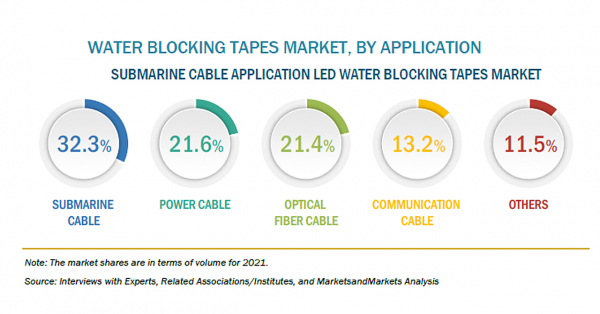 電力ケーブルは、洋上風力発電所や原油輸送用の海底パイプライン、その他のエネルギーソリューションの設置に伴い、海底用途でさらに拡大しています。欧州では、2050年までに気候変動に左右されない社会を実現するため、洋上風力発電の設置が増加しています。欧州委員会は、欧州の洋上風力発電容量を2030年までに12GWから60GWに、さらに2050年末までに300GWに増加させ、8000億ユーロの投資戦略を提案しています。このことは、海底電力ケーブルの用途にプラスの影響を与え、さらに、導体を海水の浸入から保護する止水テープにもプラスの影響を与えることになります。