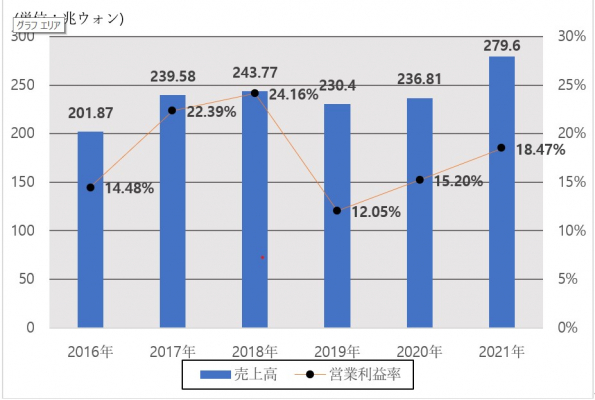 ※参照下記:[表 1?1]サムスン電子の年間売上高と営業利益率の推移(2016年〜2021年)