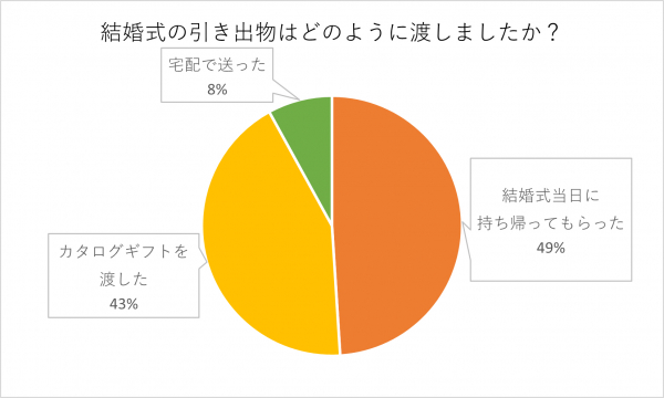 「結婚式当日に持ち帰ってもらった」が49%、「カタログギフトを渡した」が43%、