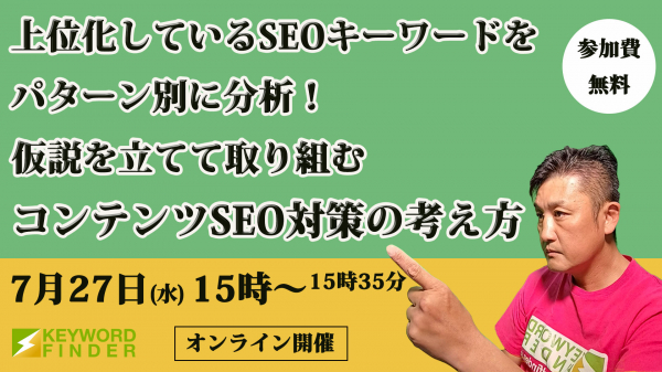 SEO無料セミナー「コンテンツSEO対策の考え方!」7月27日(水)15時開催!