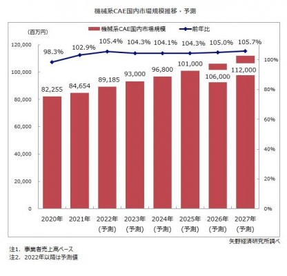 【矢野経済研究所プレスリリース】機械系CAE市場に関する調査を実施(2022年)〜2021年の国内市場規模は847億円、2022年は円安傾向により輸出型製造業の大幅な回復が追い風の見通し〜
