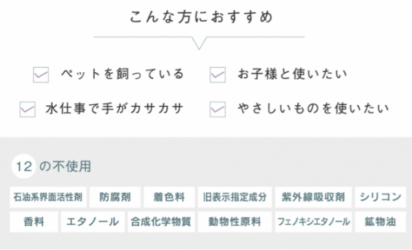 ※エタノールフリー・石油由来合成化学物質・防腐剤を使用していない。