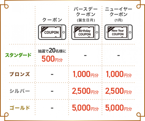 さらにご購入実績に応じてステータスランクがUP(スタンダード→ブロンズ→シルバー→ゴールド)