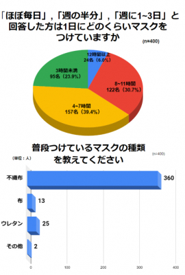 ・回答者の過半数以上の方が長時間マスクを着用していた。